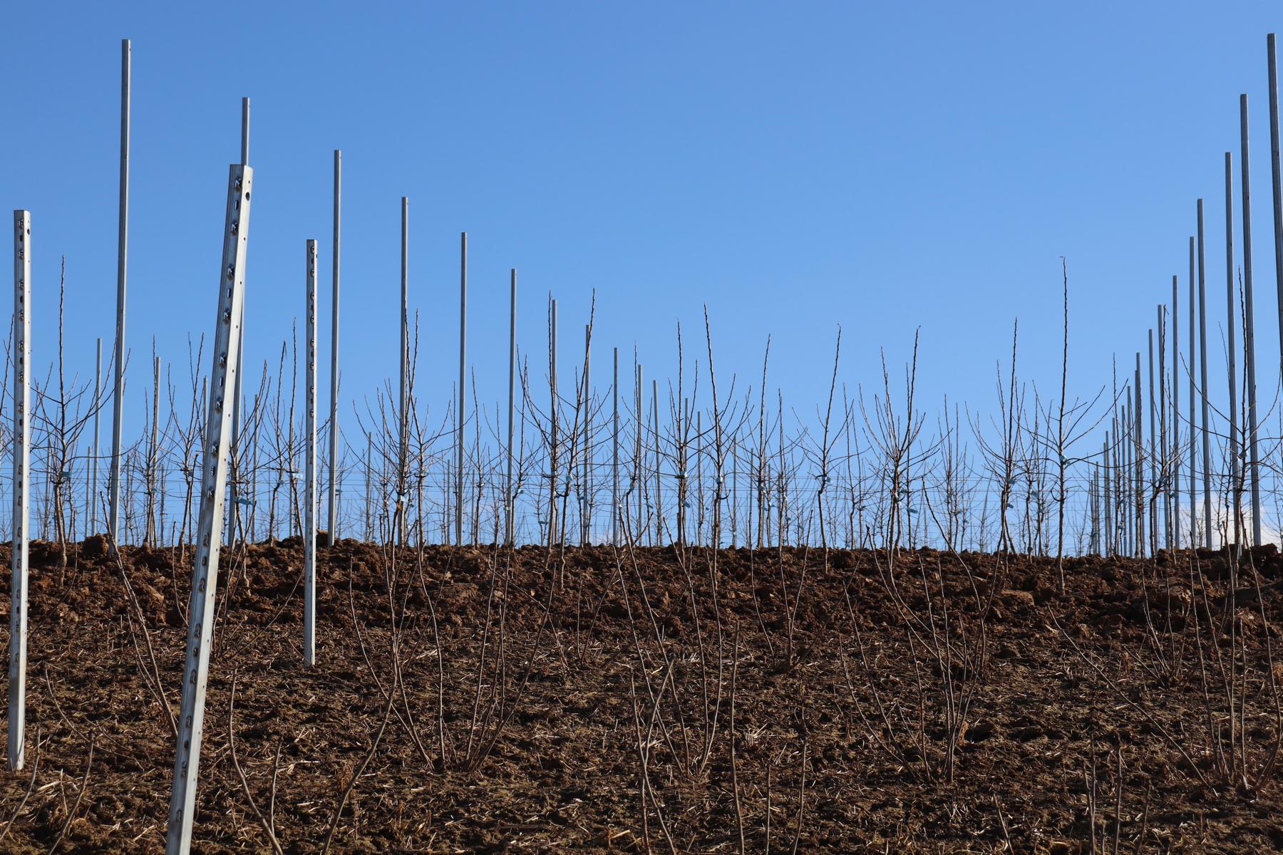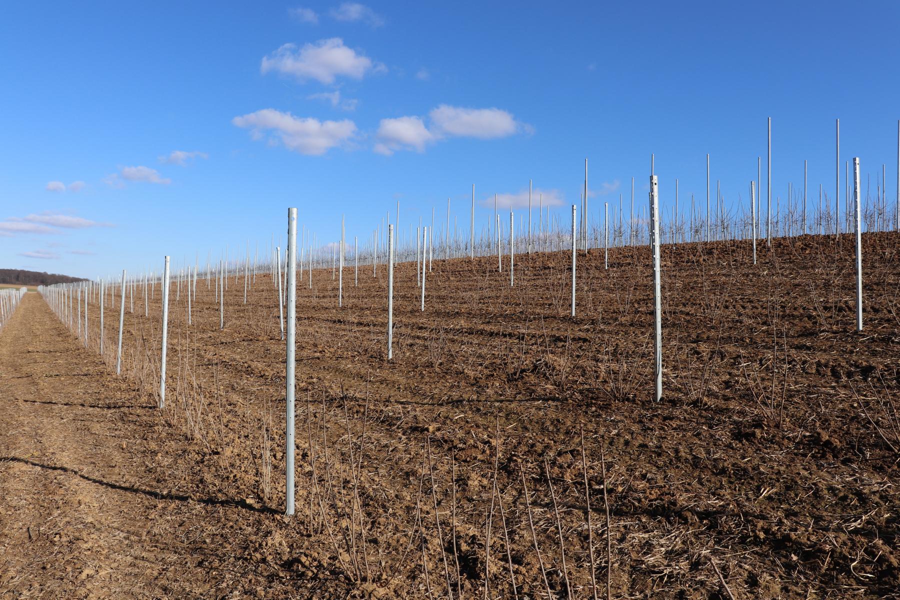 Auch über die Wintermonate waren wir fleißig: Neben des Baumschnitts, haben wir eine neue Obstanlage erstellt. Hier wachsen die Äpfel der Sorten Wellant und Rubinette, sowie rote Johannisbeeren. Die ersten Früchte können wir voraussichtlich 2022 ernten.