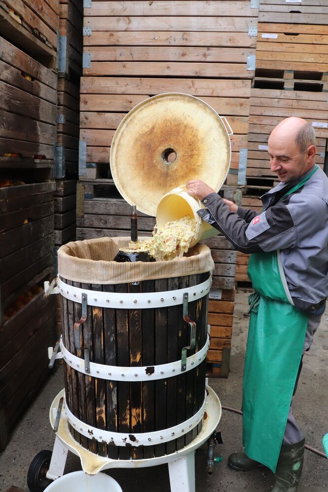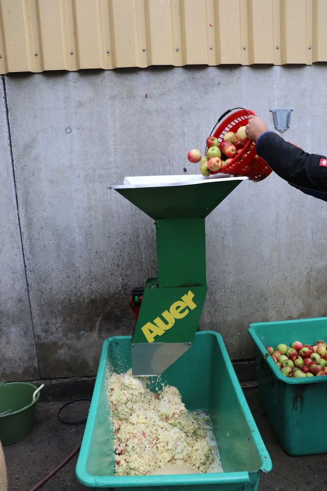 Anschließend werden sie mit einer Obstmühle gemahlen.