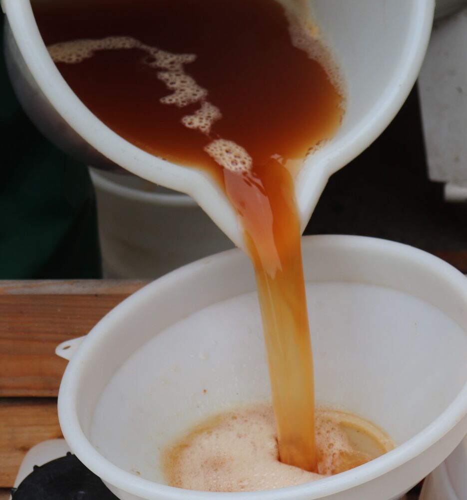 Dieser wird dann in Fässer abgefüllt. Den leckeren Süßmost finden Sie dann in unserem Hofladen.