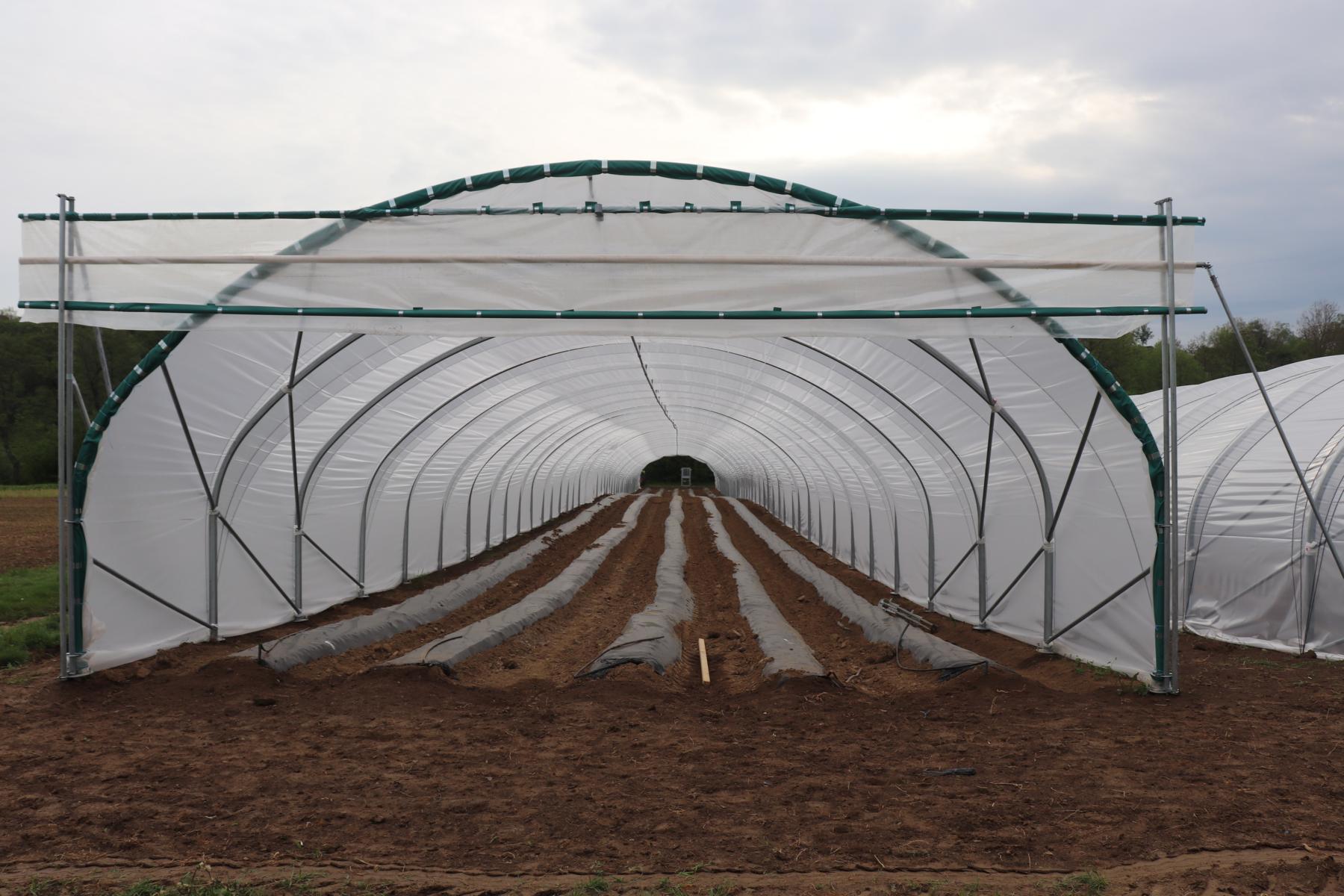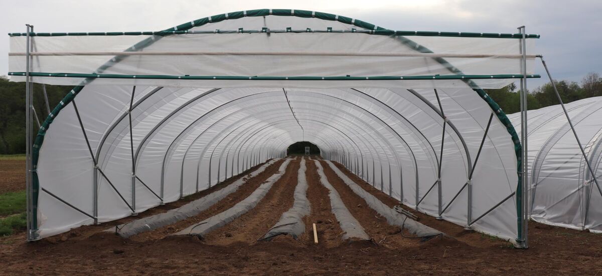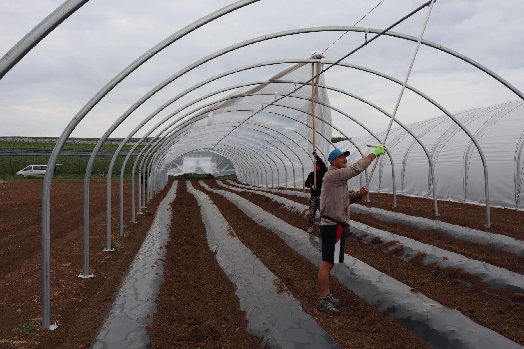 Anschließend wurde die Folie auf die Tunnel gezogen.