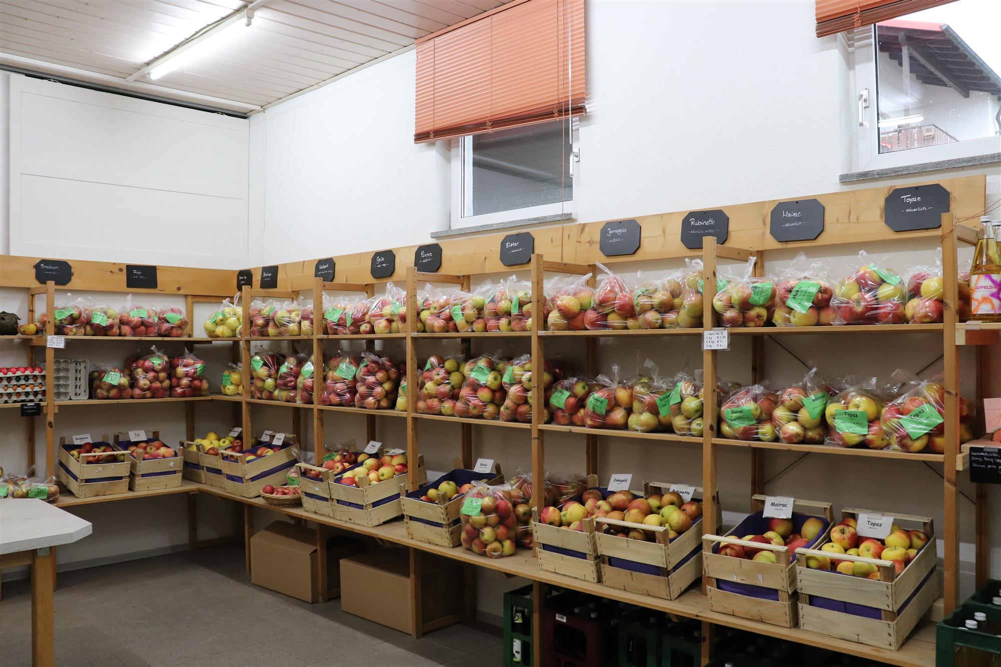 In unserem Hofladen finden Sie trüben und klaren Apfelsaft. Diesen beziehen wir von der Firma Beil, den wir mit unserem Mostobst beliefern. Über die Erntezeit – Mitte September bis Ende Oktober – können Sie frisch gepressten Süßmost (Apfelsaft) in unserem Hofladen kaufen.