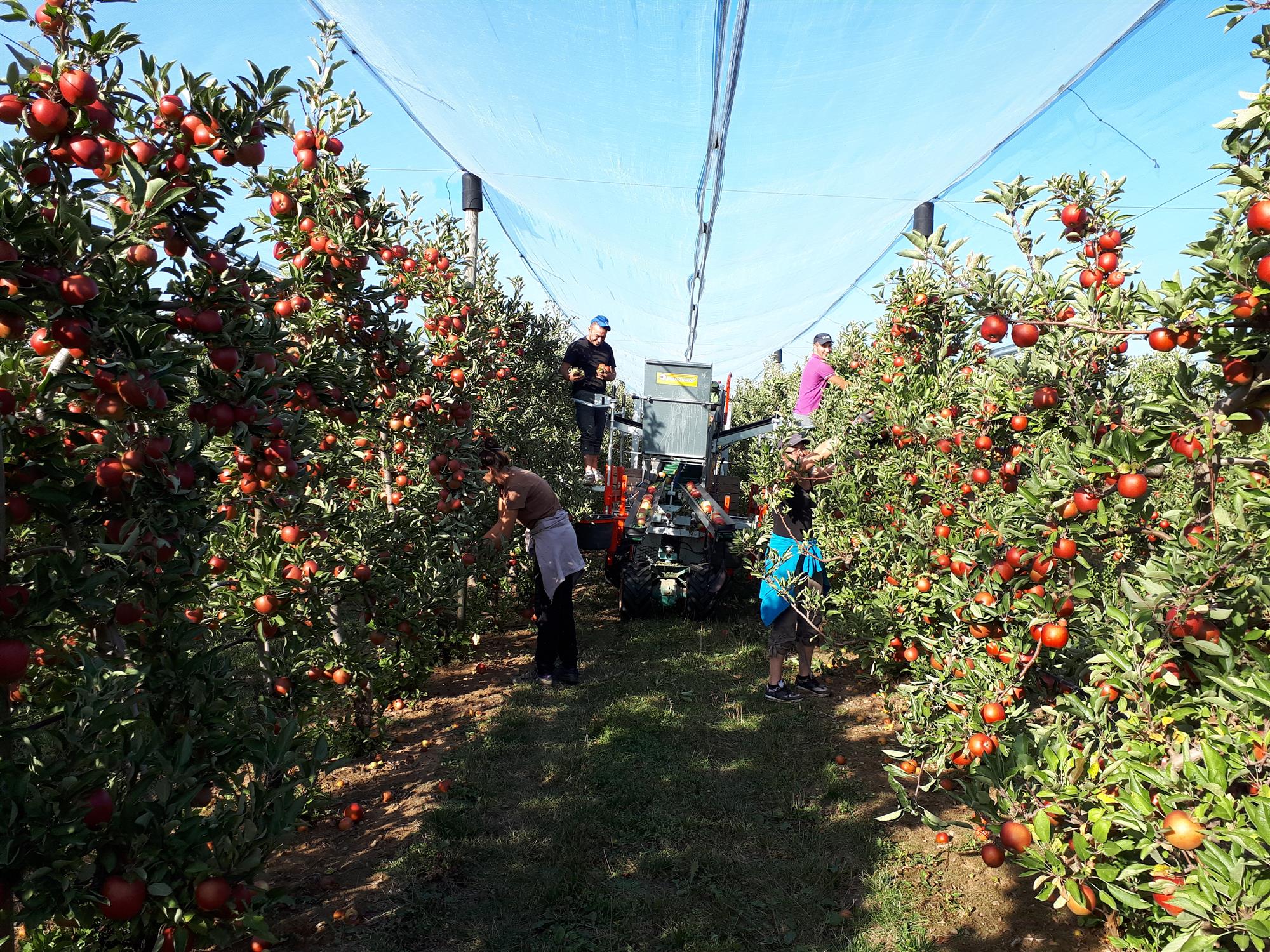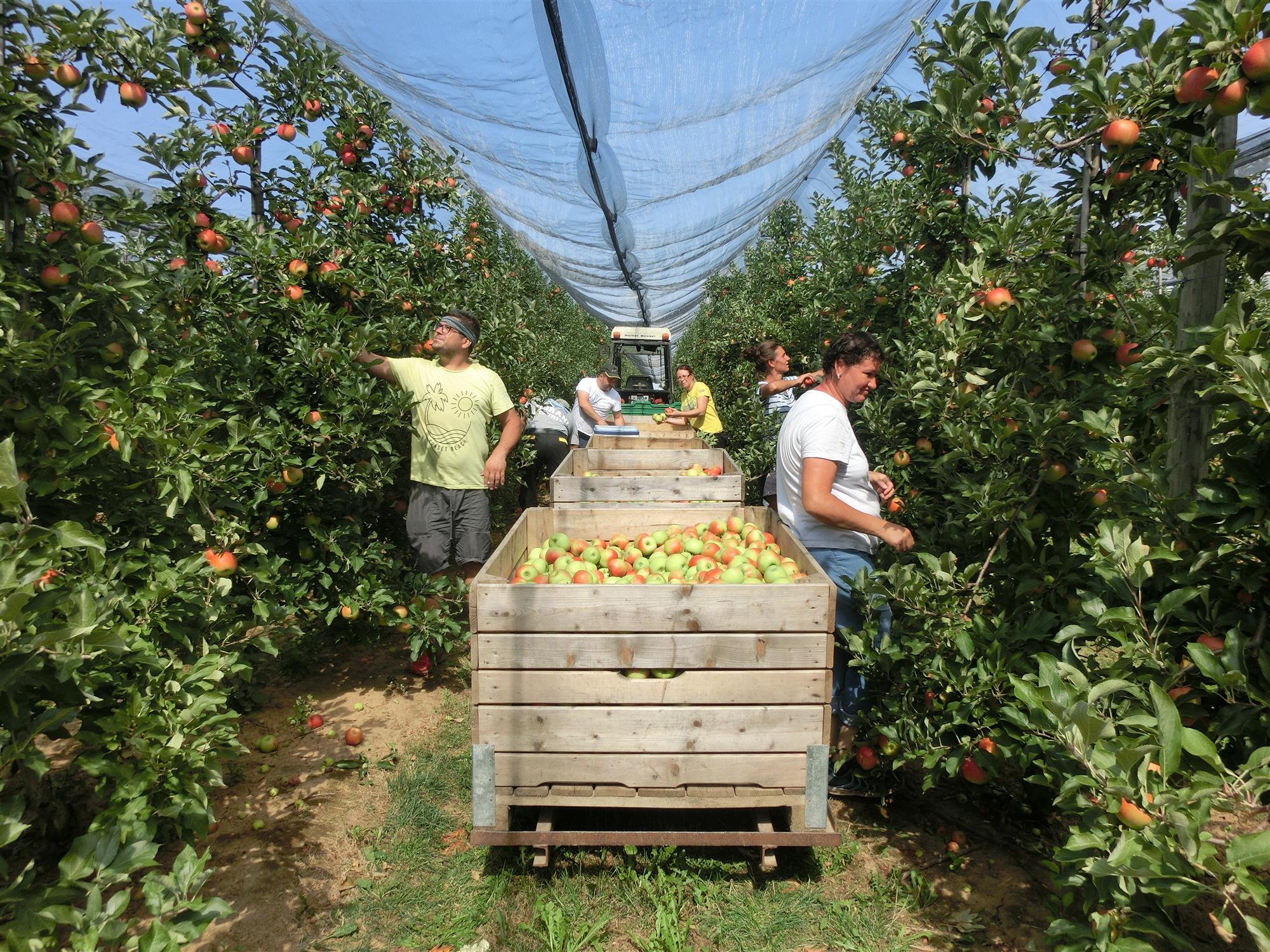 Bei unseren Apfelsorten haben wir eine große Auswahl: ob ganz süß oder eher säuerlich, es ist für jeden was dabei. Mit modernen Erntetechniken pflücken wir die Äpfel zwischen August und November. Unsere Hagelnetze schützen unsere Äpfel vor Unwettern. Nach der Ernte lagern wir die Äpfel in speziellen Kühllagern, damit Sie das ganze Jahr knackige Äpfel bei uns erhalten. Von August bis Juni bedienen wir Sie.